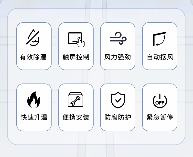 備注:濕度達(dá)到設(shè)定值,設(shè)備會(huì)自動(dòng)停止工作,環(huán)境濕度高于設(shè)定值,自動(dòng)啟動(dòng)降低用電能耗。